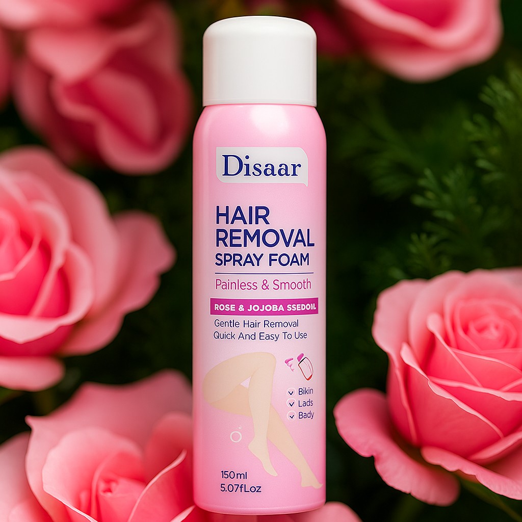 Disaar ™ HAIR REMOVAL SPRAY offers a breakthrough solution that ends the pain, the cuts, and the struggle for smooth skin. Whether it’s for your underarm, legs, chest or bikini area – this product delivers.