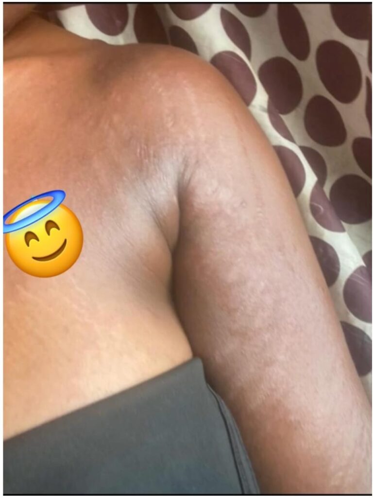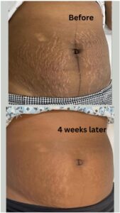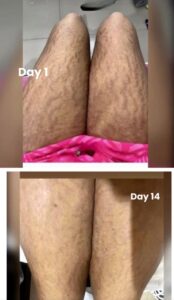I began applying this gel, and I am impressed by how the stretch mark has become. The first image is from the day got it, and the second one is from 2 weeks and 4 days of using it. I am so glad my friend recommended this. I am now using it on scars too.